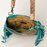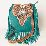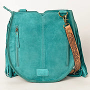 American Darling Suede Hand-Tooled Purse w/Fringe - Turquoise