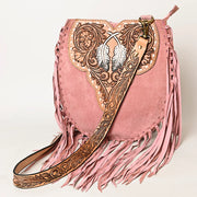 American Darling Suede Hand-Tooled Purse w/Fringe - Light Pink