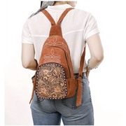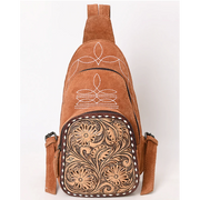 American Darling Women's Genuine Western Suede Leather Sling Bag - Caramel