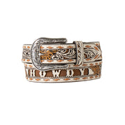 Angel Ranch Ladies Belt - Ivory Floral Filigree w/Brown Flowers
