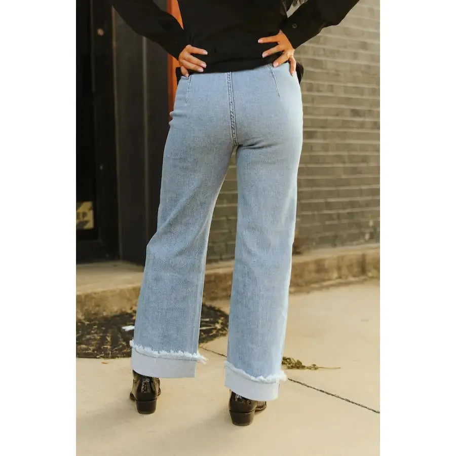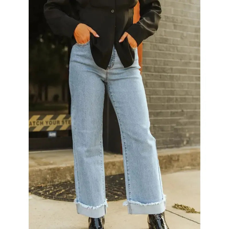 Lucky & Blessed Women's High Rise Boyfriend Cuffed Jeans- Light Wash