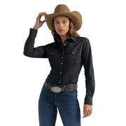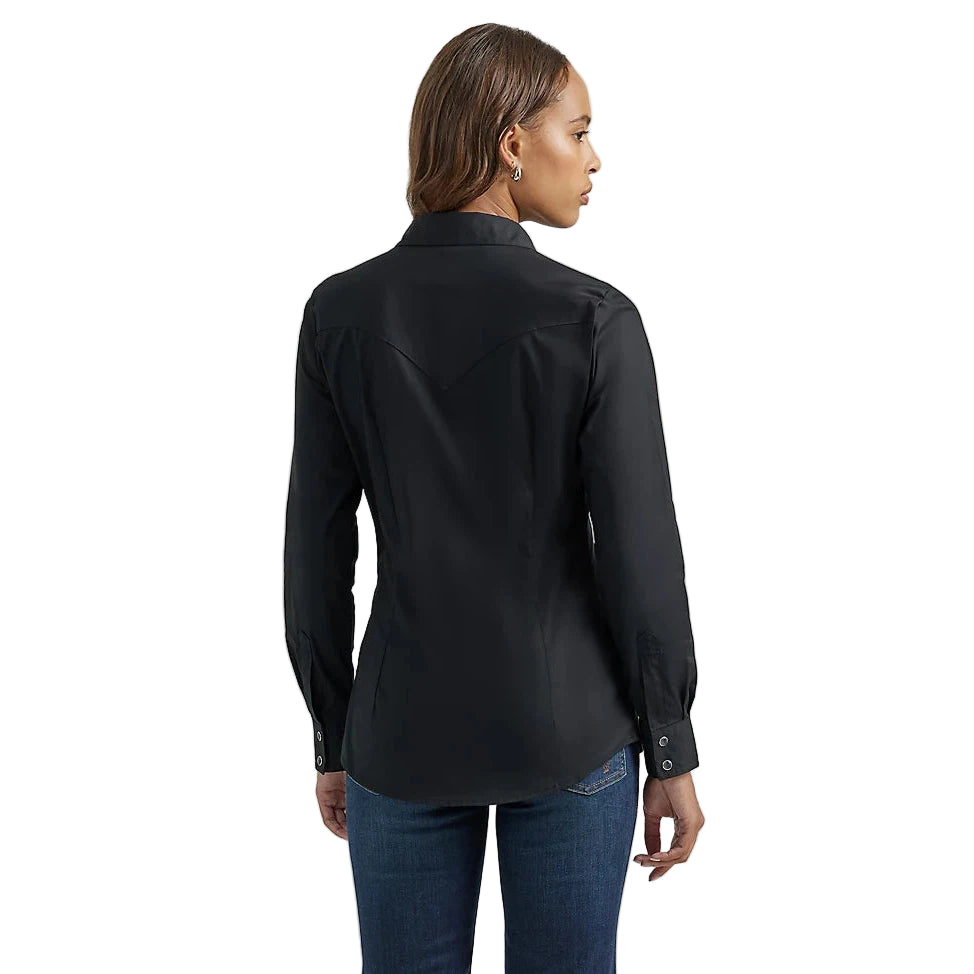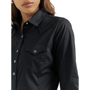 Wrangler Women's Long Sleeve One Point Front & Back Yokes Solid Shirt - Black