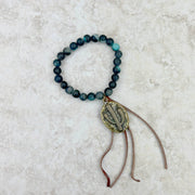 - Jasper Bracelet with Tassel and Metal Cactus Pendent
