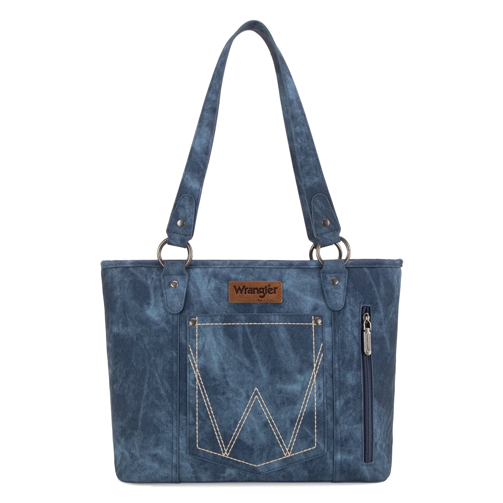- W-shaped stitching with wrangler logo applique