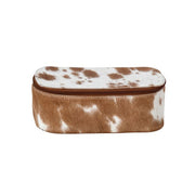 - This versatile toiletries bag presents beautiful hair-on hide in a caramel and light mix