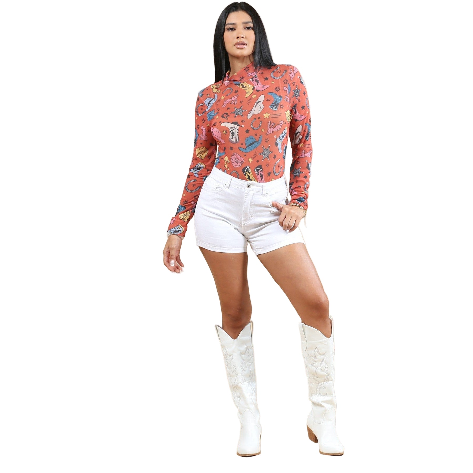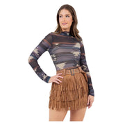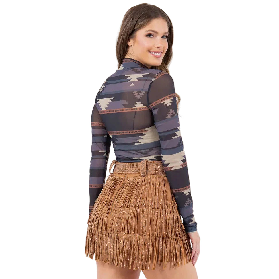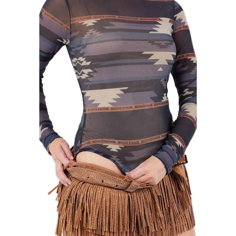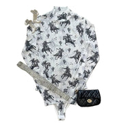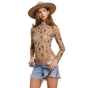 Nylon Apparel Women's Print Mock Neck Bodysuit - Assorted Colours