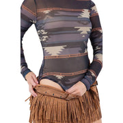 - Western Cowboy Travel Print On Mesh Fabric