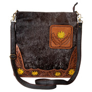 Ohlay Hand Tooled Hair On Large Crossbody Purse - Brown/Yellow