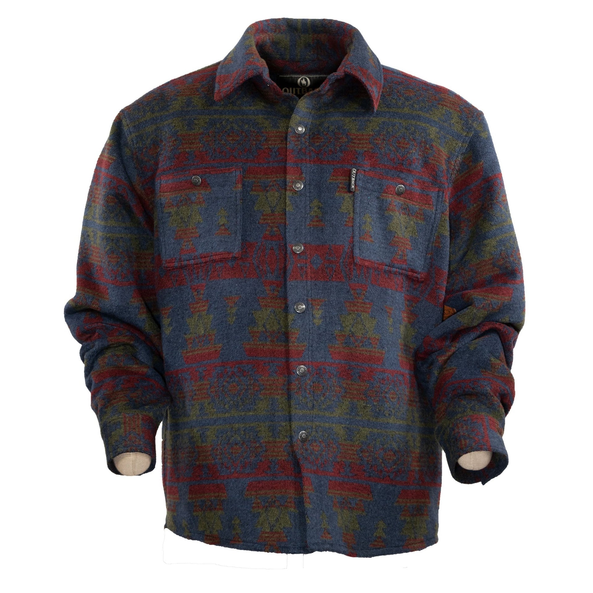 - Made from a handsome Aztec pattern, this heavy-duty shirt jacket snaps up the front and features an extended hemline for extra coverage