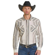 Panhandle Men's Modern Vintage Natural Stripe Long Sleeve Snap Shirt - Tan