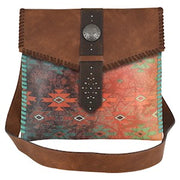 RDHC Women's Aztec Print Leather Whipstitch Crossbody Purse - Turquoise/Brown
