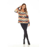 Rising Women's Long Sleeve Aztec Cali Mountain V Neck Shirt- Multi
