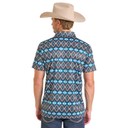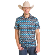 Rock & Roll Men's Aztec Print Short Sleeve Shirt- Black