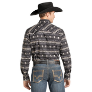 Rock & Roll Men's Dale Brisby Aztec Long Sleeve Snap Shirt - Black