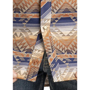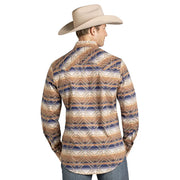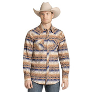 Rock & Roll Men's Long Sleeve Aztec Print Snap Shirt - Tan/Blue Striped