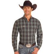 Powder River Men's Long Sleeve Brushed Plaid Shirt- Forest Green