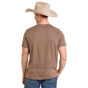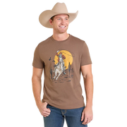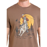 Rock & Roll Men's Skeleton Bronco Rider Graphic Short Sleeve Tee Shirt- Brown