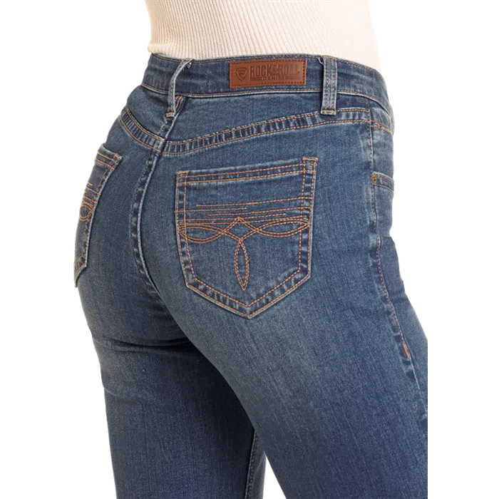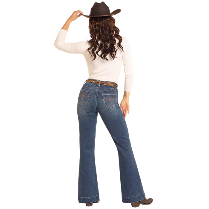 Rock & Roll Women's Cowgirl Boot Pocket Midrise Trouser - Dark Vintage