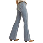Rock & Roll Women's Mid Rise Relaxed Fit Trouser Jeans - Light Wash