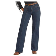 Rock & Roll Women's Patch Pocket Relaxed Flare Leg Jeans - Medium Wash