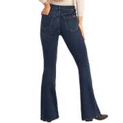 Rock & Roll Women's Scallop Detail Button Flare Jeans - Dark Wash