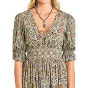Rock & Roll Women's Smocked Mini Dress - Jade Green