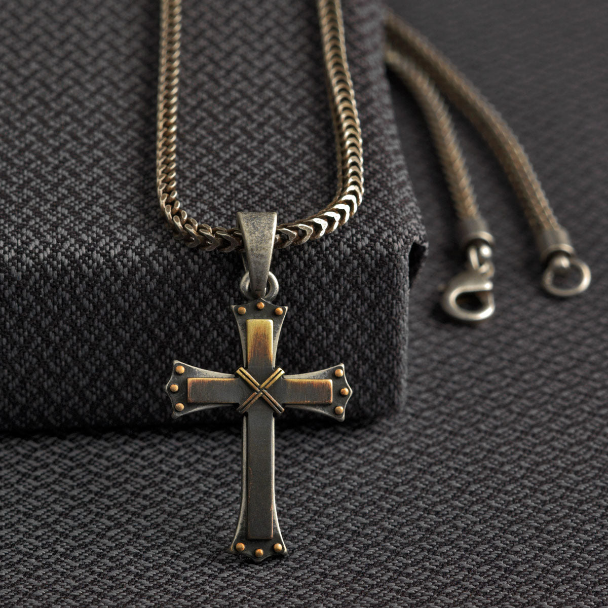 Twister Men's Curb Chain Cross Necklace - Antique Silver