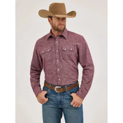Wrangler Men's Cody Johnson Two Pocket Western Long Sleeve Snap Shirt - Burgundy