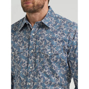 Wrangler Men's Competition Western Snap Long Sleeve Shirt - Blue Mix Paisley
