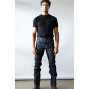 Kimes Men's Raw James Mid Low Rise Straight Bootcut Jeans - Blue
