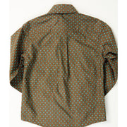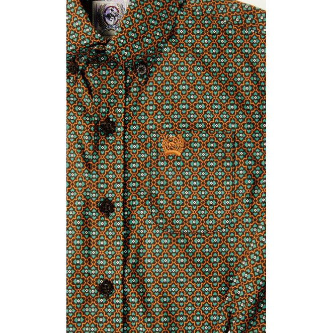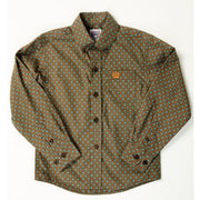 Cinch Boy's Long Sleeve Button Down Geometric Print Shirt- Brown
