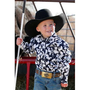 Cinch Boy's Long Sleeve Button Down Print Shirt- Navy