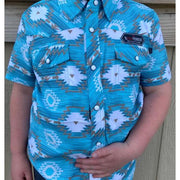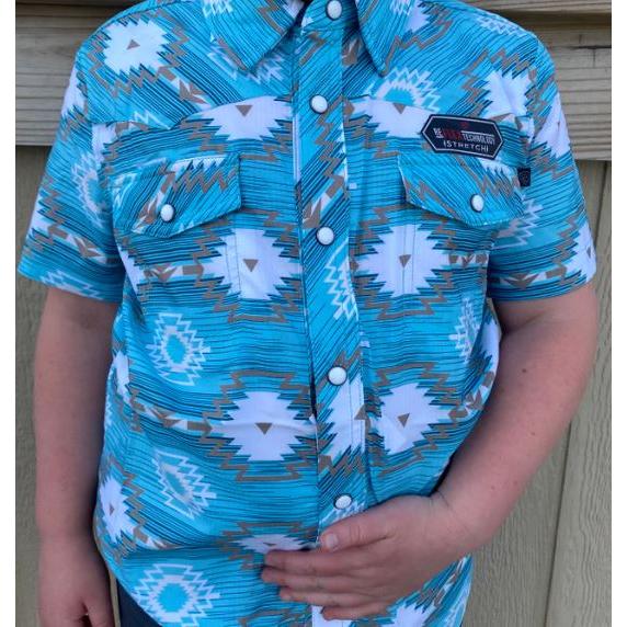 Rock & Roll Boy's Short Sleeve Aztec Print Tek Snap Shirt- Turquoise