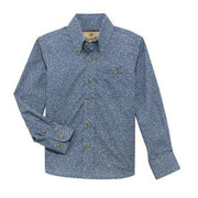 Wrangler Boy's Classic Long Sleeve Paisley Shirt- Blue/Navy
