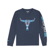 Wrangler Boys Long Sleeve Graphic Tee Shirt- Dark Sapphire Heather