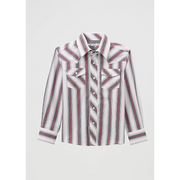 Wrangler Boy's Long Sleeve Western Snap Shirt- Brushpopper Red Stripe