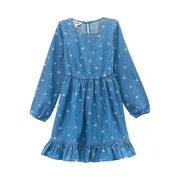 Wrangler Girl's Long Sleeve Ruffle Hem Horseshoe Denim Dress - Denim