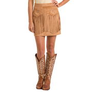 Rock & Roll Women's Microsuede Fringe Skirt- Camel