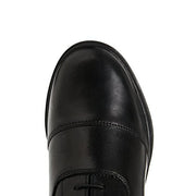 - These smart long leather riding boots are made with a polished leather, features stretch mock lace detail to the front, dressage cut tops with soft piqued leather inners and a zip fastening at the back