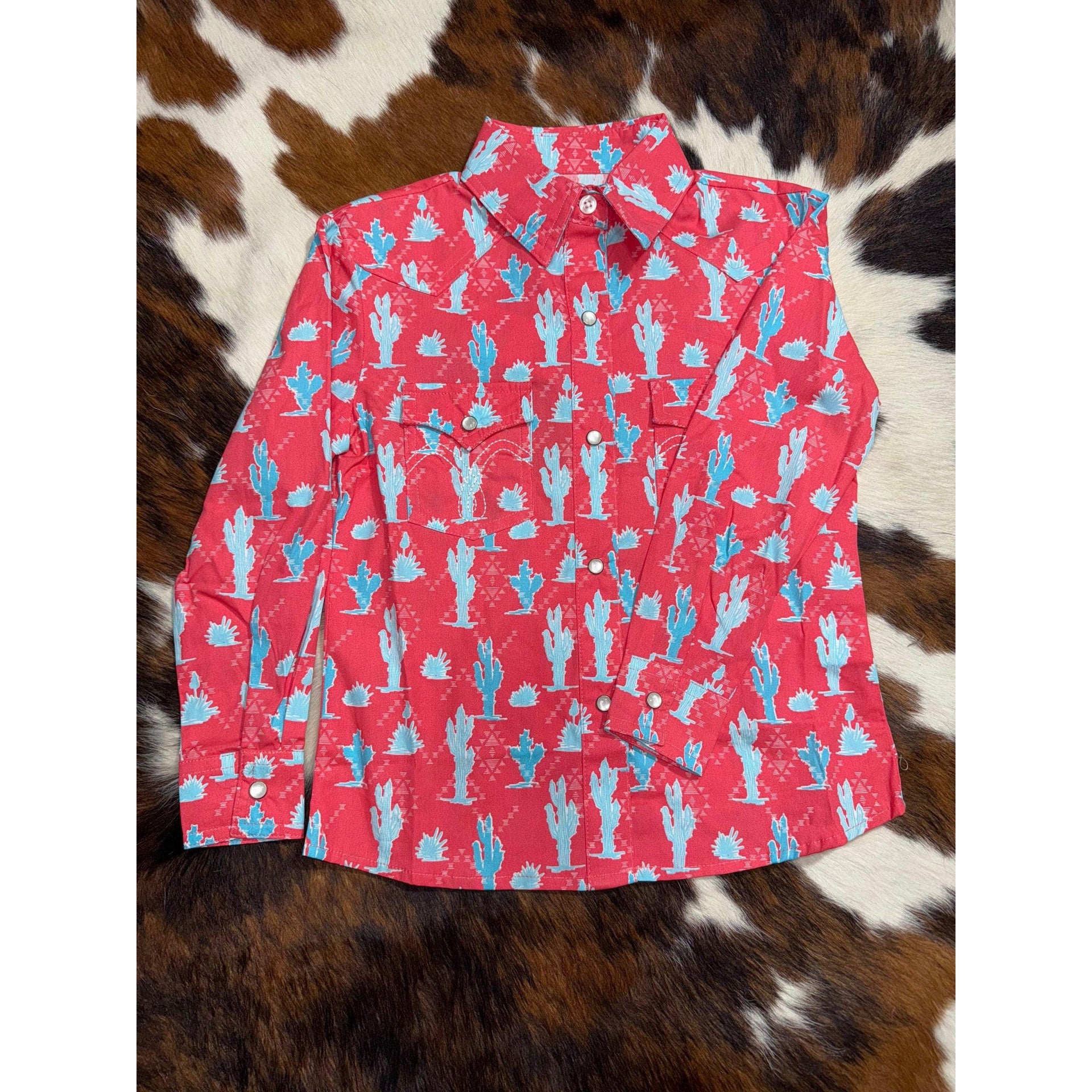 Panhandle Girl's Cactus Long Sleeve Western Shirt- Coral