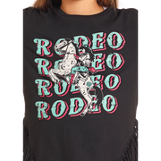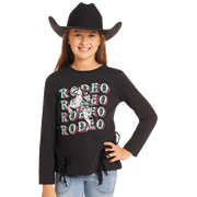 Rock & Roll Girl's Long Sleeve Graphic Shirt with Fringe - Black