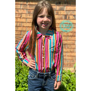 Sterling Kreek Girl's Feel The Sunset Long Sleeve Shirt - Pink & Turquoise