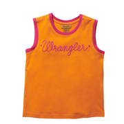 Wrangler Girl's Sleeveless Logo Shirt - Tangerine/Hot Pink