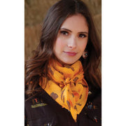 When ranch work comes calling, blaze the next trail wearing a printed poly-satin wild rag crafted by Cruel Denim. This on-fashion navy wild rag accessorizes any favorite cowgirl outfit with a variety of uses and tying options. Don't wait!