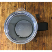 Features a clear push on, sip through lid