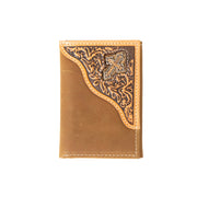 3D Men's Cross Concho Floral Embossed Trifold Wallet - Brown
