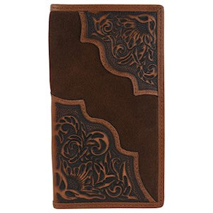 Tony Lama Men's Floral Tooled Roughout Rodeo Wallet - Brown