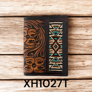 Increase quantity for Twisted X - Trifold with Floral Carving TT Finish and Aztec Bead Inlay