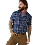 Ariat Mens Rebar Made Tough DuraStretch Work Shirt - Stonewash Plaid