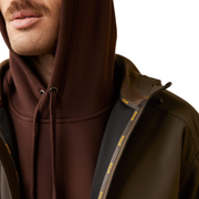 Decrease quantity for Ariat Men's Rebar Stretch Canvas Softshell Hooded Logo Jacket Wren/Black